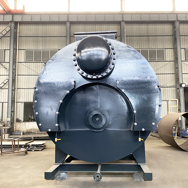 我们利用中心对称的三回程结构的设计思想,设计容量较大的三回程炉体,这种结构锅炉最大的特点:锅筒中心对称、全湿背式,以及极大的内胆和火箱的结构,有利于提供足够的辐射受热面。而对流受热面有第二回程和三回程的管束构成。回燃室前管板采用与炉胆连接,第二回程和第三回程转烟室构成了前烟箱,此出烟烟温已低于500℃。后烟箱烟气温度在三回程烟管充分吸热后低于150℃,然后排入大气。前后烟箱采用铰链式轻形结构,方便启闭检修。上半部分为真空室(负压蒸汽室),其内装设有管式不锈钢汽水热交换器,用来加热流过换热器中的循环水。