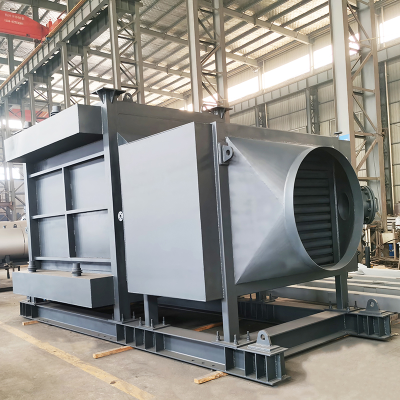 燃油、燃气、燃煤经过燃烧产生高温烟气释放热量,高温烟气先进入炉膛,再进入前烟箱的余热回收装置,接着进入烟火管,最后进入后烟箱烟道内的余热回收装置,高温烟气变成低温烟气经烟囱排入大气。由于余热锅炉大大地提高了燃料燃烧释放的热量的利用率,所以这种锅炉十分节能。