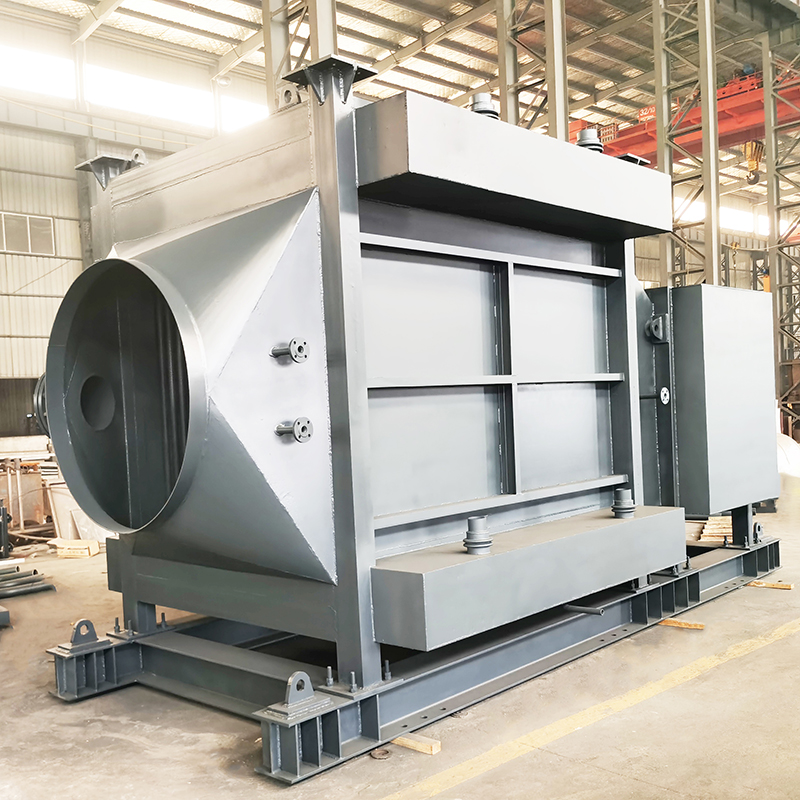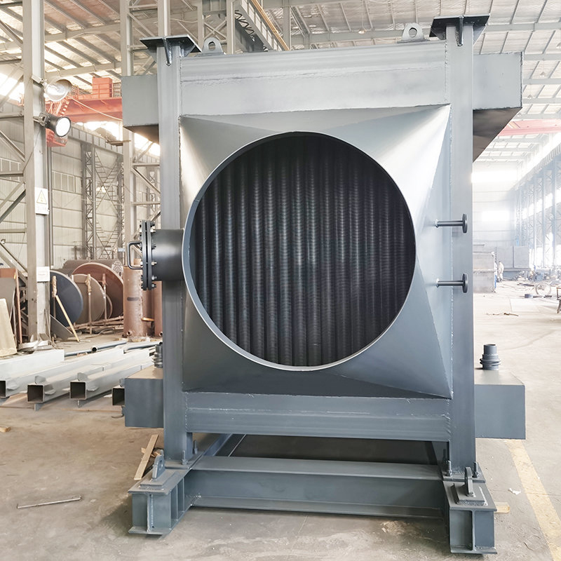 由分配集箱、下集箱、管组、上集箱组成。锅炉给水从锅筒引出入分配集箱,为了使集箱各部位温度不出现偏差,分配集箱与下集箱进水采用分散下降管引入,水进入下集箱后分散进入132根φ42×4无缝钢管和6mm厚扁钢组成的节圆为φ2400mm的圆形烟道受热面,然后产生汽水混合物进入上集箱,由上升管引入锅筒。